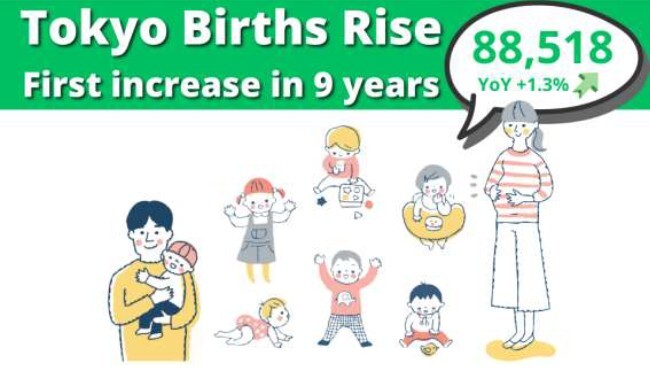 Births in Tokyo in 2025 rose 1.3% from the previous year to 88,518, according to preliminary national government statistics.